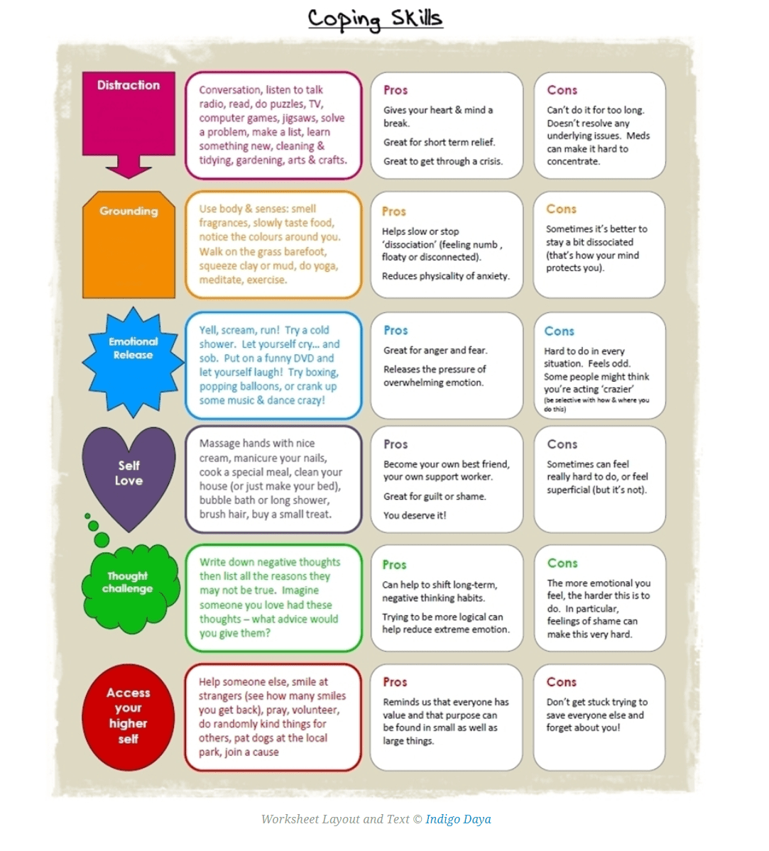 Coping skills are the tactics, capability, or ability of a person. Below are links to a few more worksheets which are closely related to the worksheet above. Knowing your triggers, and being.